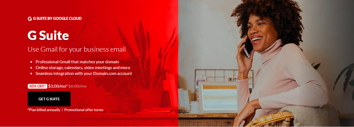 Join more than 5 million users that use Gmail, Docs, Drive, and Calendar for their business. With G Suite through Domain.com, you get one package that works seamlessly from your computer, phone or tablet.